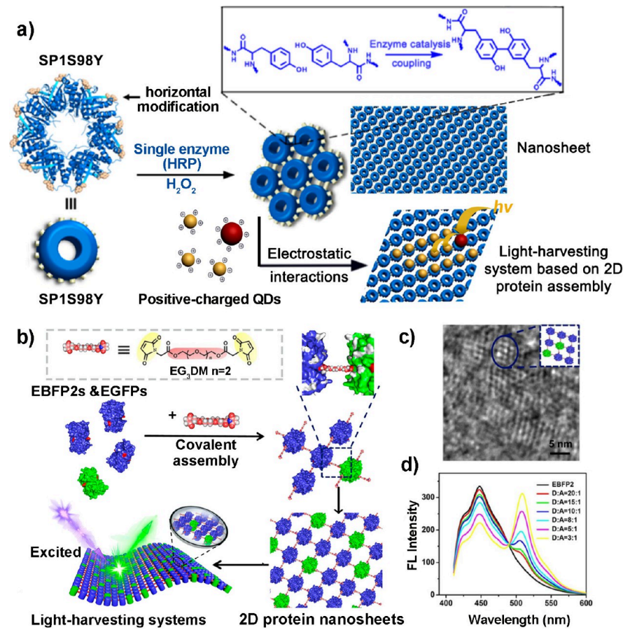 图3.基于二维蛋白质纳米片的人工光捕获系统