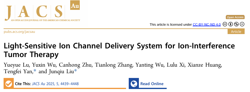 近日,做爱视频 刘俊秋教授团队在光控人工离子通道用于肿瘤治疗领域取得重要突破。相关研究成果以题为 “Light-Sensitive Ion Channel Delivery System for Ion-Interference Tumor Therapy” 发表于国际化学领域顶级期刊 JACS Au上。