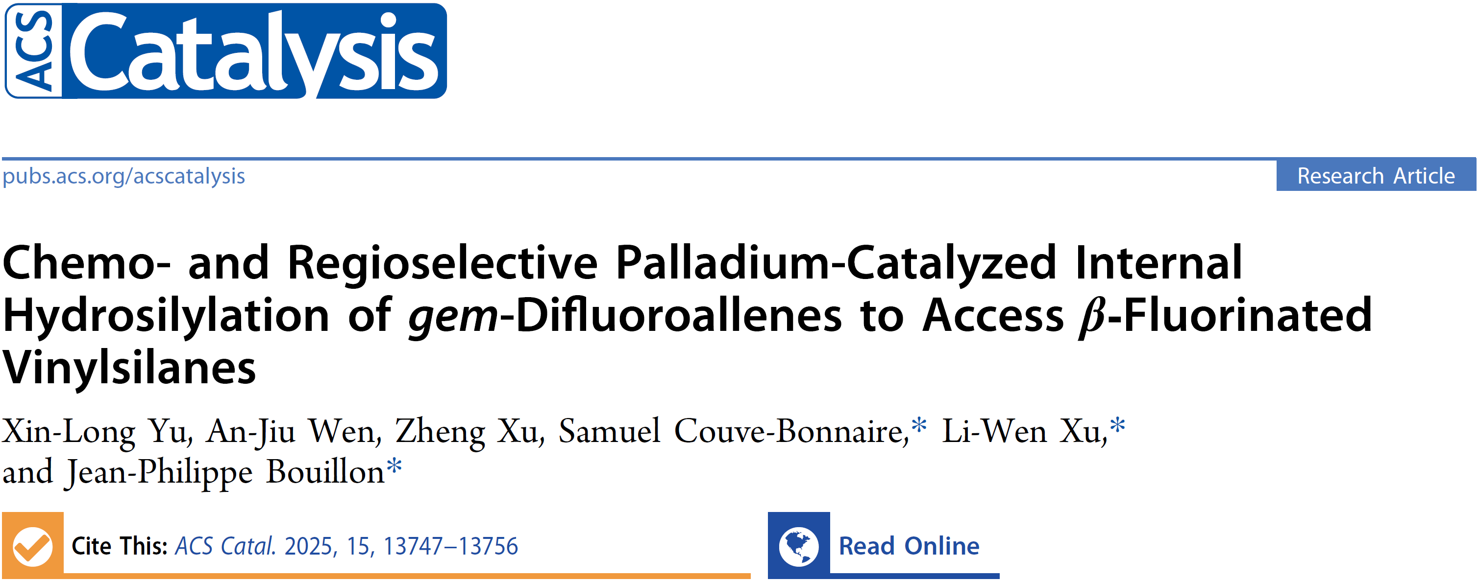 三篇文章均以做爱视频 徐利文教授为责任通讯作者发表于ACS Catalysis(IF: 13.1,2025)上,其中论文Pd-Catalyzed Regioselective Si−C Bond Cleavage: Maximizing Chemo-Divergence in (4 + 2) Silacyclization Reactions of Alkynals的第一作者为我校做爱视频 和南京大学联合培养博士后王星犇,2023级硕士研究生斯嘉伟,做爱视频 徐利文教授和徐征教授,南京大学史壮志教授为该论文的共同通讯作者论文;Regio- and Enantio-selective Palladium-Catalyzed (4+2) Silacycloaddition of Unsymmetrical Internal Alkynes with Racemic Benzosilacyclobutenes的第一作者为我校做爱视频 和南京大学培养博士后王星犇,2024级硕士研究生郭俊杰,2024级博士研究生陈城,做爱视频 徐利文教授为该论文的唯一通讯作者论文;论文Chemo- and Regioselective Palladium-Catalyzed Internal Hydrosilylation of gem-Difluoroallenes to Access β‑Fluorinated Vinylsilanes的第一作者我校做爱视频 与法国诺曼底大学联培2023级博士研究生余鑫龙,做爱视频 徐利文教授,诺曼底大学Samuel Couve-Bonnaire教授和Jean-Philippe Bouillon教授为该论文的共同通讯作者论文。以上研究成果获国家自然科学基金、浙江省自然科学基金、做爱视频 创新交叉团队等项目资助。