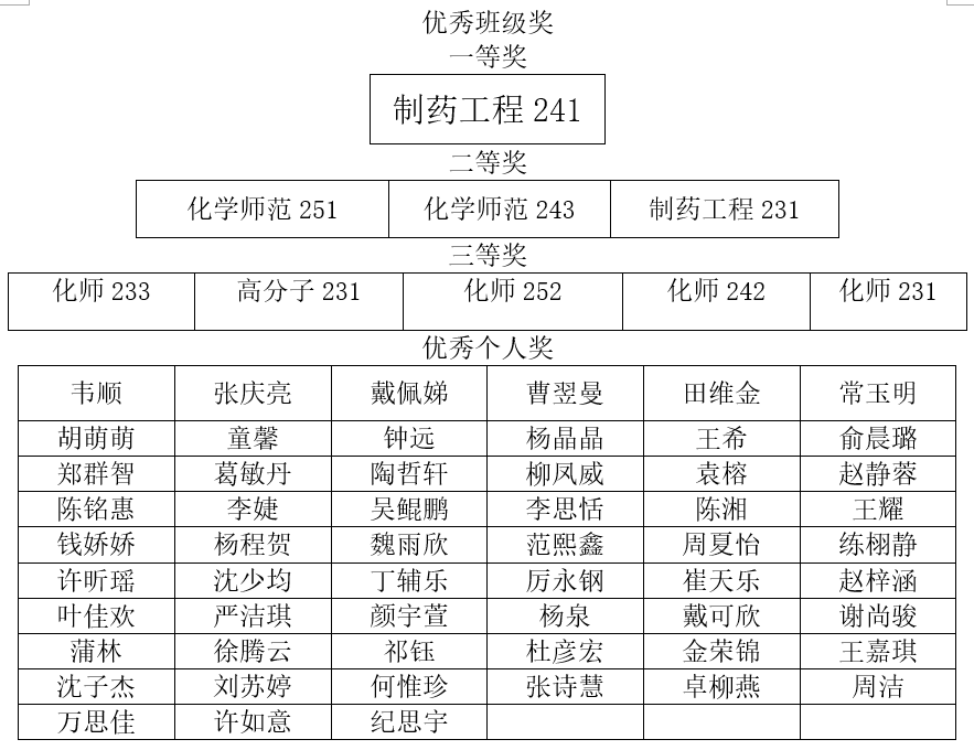 经过评比,做爱视频 评选出优秀班级奖一等奖1个,二等奖3个,三等奖5个,优秀个人奖57人。以下是详细获奖名单: